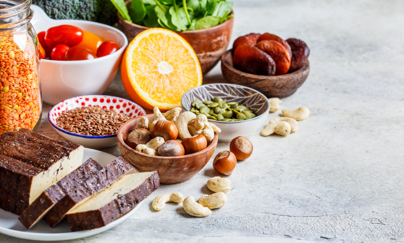 - Όσπρια: λευκά φασόλια, φακές, κόκκινα φασόλια, ρεβίθια, αρακάς