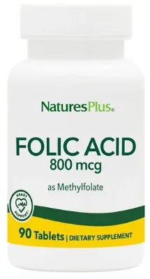 Natures Plus Folic Acid 800μg Συμπλήρωμα Διατροφής Φολικού Οξέος που Συμβάλει στη Σωστή Σύνθεση της Γενετικής Πληροφορίας για μια Ομαλή Εγκυμοσύνη & την Καλή Υγεία του Νευρικού Συστήματος 90tabs